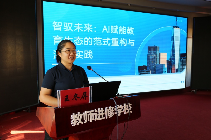 活动特邀长春大学管理学院副教授、硕士生导师王冬屏作为主讲专家。王教授以《智驭未来:AI赋能教育生态的范式重构与深度实践》为题,从传统教学与AI融合的必然趋势、“教-学-评”全链智能化转型、AI教学工具应用及教师角色转变等多个维度,结合专业理论与生动案例,为参会教师带来了一场内容丰富、启发性强的学术分享。讲座既具备理论高度,又具有较强的实践指导意义。