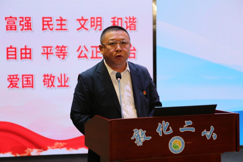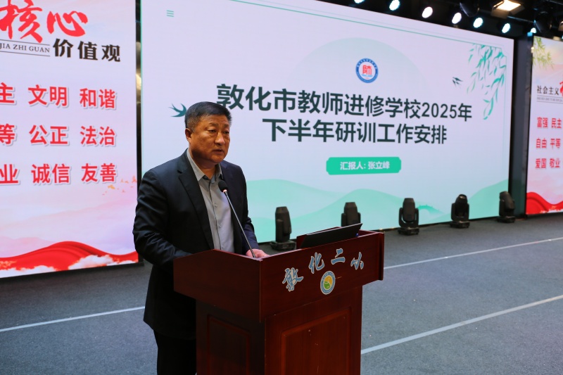 随后,会议依次开展多项议程:王飞飞副科长公布《敦化市推进集团化办学促进城乡义务教育均衡发展实施方案》,为缩小城乡教育差距、优化教育资源配置明确路径;张立峰校长对下半年研培工作进行安排部署,聚焦教师专业成长与教学能力提升;吴哲广副校长就教学常规工作提出具体要求,夯实教育教学管理基础。